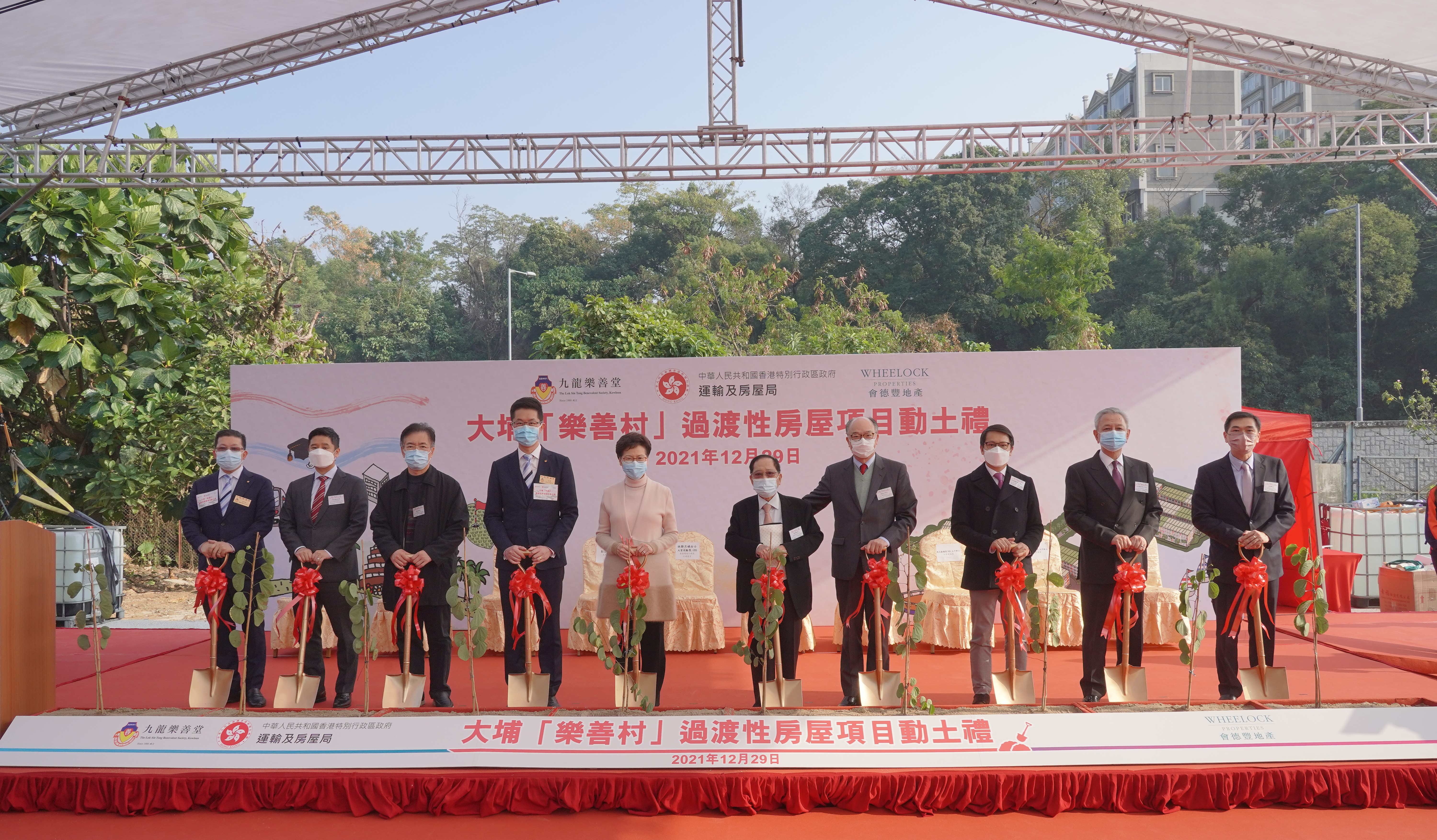 「九龍樂善堂」及「會德豐有限公司」在「運輸及房屋局」推動下,開展大埔「樂善村」過渡性房屋項目,並於今日舉行假黃魚灘村舉行動土禮,由香港特別行政區行政長官林鄭月娥女士擔任主禮嘉賓。
